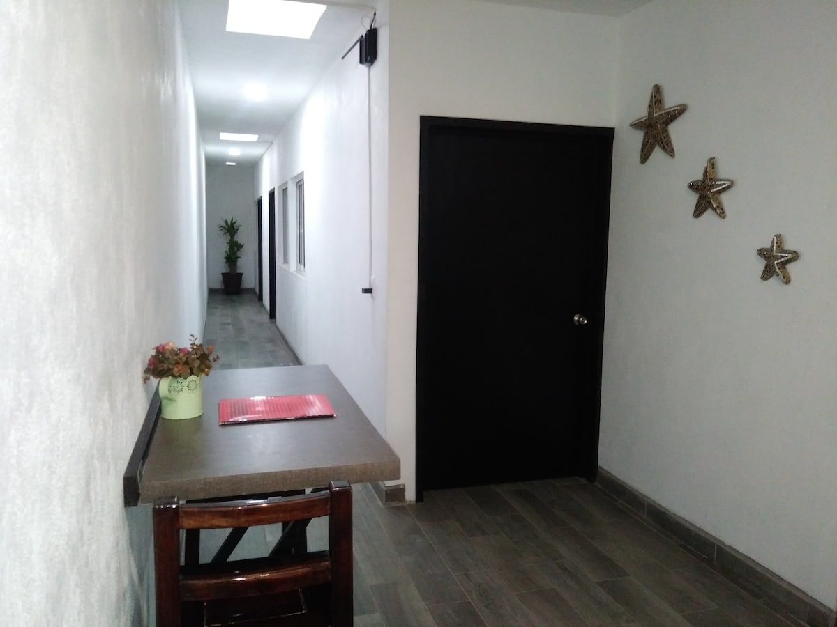 Casa ubicada a pie de playa, con 8 villas (departamentos), cada una con dos habitaciones con aire acondicionado y closet, baño completo con agua caliente, cocineta integral con frigobar y estufa, sala con tv con cable, wifi, áreas compartidas como terraza, alberca infinity con barra, espacios verdes y estacionamiento.