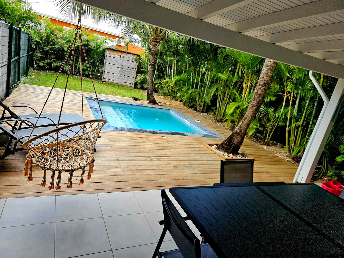 Sur les hauteurs de Ste Anne, charmant cottage privé situé à 5 min ( 3km en voiture) des commerces et des plages paradisiaques du Club Med, de Bois Jolan et du village. Grâce à sa position dominante, la propriété de 3 000 m2 bénéficie d’un cadre exceptionnel et d’une ventilation naturelle. Idéal pour les amoureux de la nature, ce cottage avec piscine privée blottit dans un écrin de verdure, vous offrira la tranquillité , le calme et l’intimité pour vous ressourcer durant votre séjour.