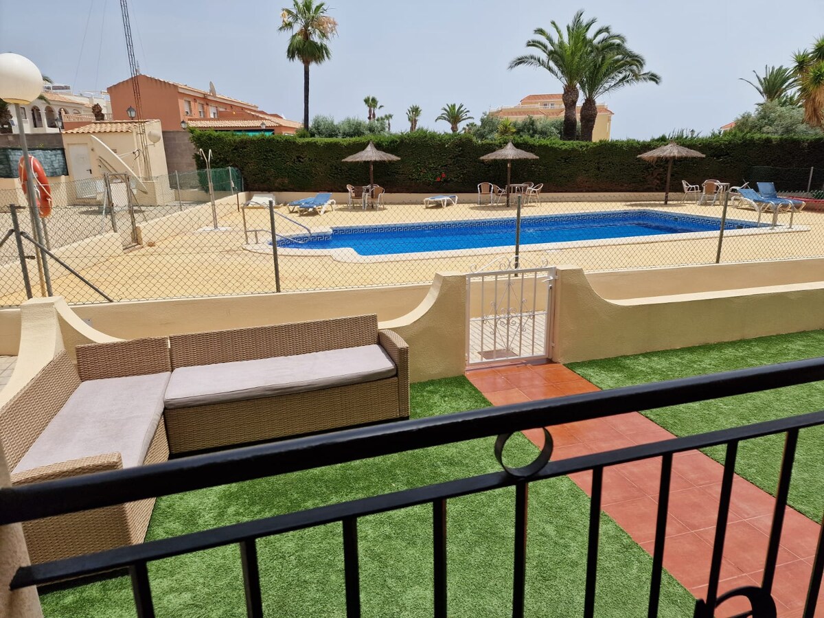 1st floor 2 bed apartment! Huge seaview roof terrace with sun loungers covered pergola & bbq facilities Front balcony with table 2 chairs WiFi included Off St parking 2 Aircon and ceiling fans Communal gated swimming pool Bathroom with shower in bath Welcome pack included 20 min walk to beach 1 min walk to local shops bars including Waldemars, Abbey Tavern & Emerald Isle Airport taxi service available on request from €55 €70 Cleaning charge to be left by guest on departure.