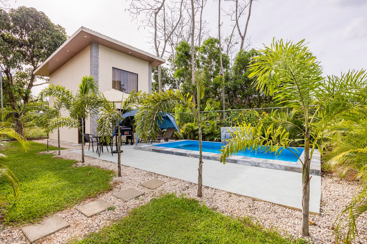 A modern loft style 1 bedroom, 1 bathroom with modern luxuries and furnishings located 15 minutes outside of La Fortuna Town. Pool on site and outside seating area. With many amazing hot springs just 20 minutes away. Our newly built modern home offers air conditioning, stainless steel appliances within a gated community. King size bed, high speed internet, Smart TV, outside pool furniture, washer/dryer. Breakfast included for stays less than two weeks. On site spa and hair salon.