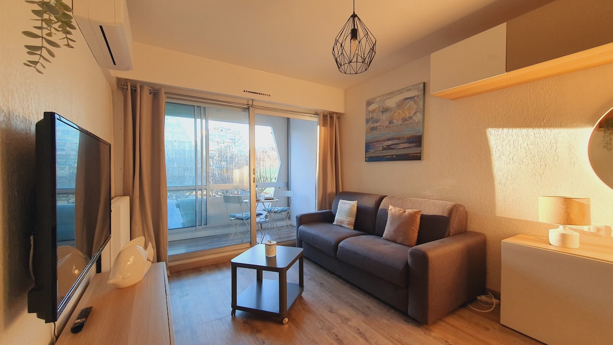 ⛱ Acogedor estudio, completamente renovado en una residencia muy tranquila y agradable ⛱ ▸ A 3 minutos de la playa con vistas al mar desde el balcón ▸ Aparcamiento privado, cerrado y seguro: posibilidad de aparcar 2 coches ▸ Totalmente equipado: Wifi, Aire acondicionado, TV, Lavadora Se proporciona▸ ropa de cama: sábanas, toallas, mantas ▸ Cerca de tiendas y restaurantes (Lidl, Super U, panadería, estanco,...) ▸ Horarios de salida flexibles ▸ Ideal para 3 personas (2 adultos y 1 niño)