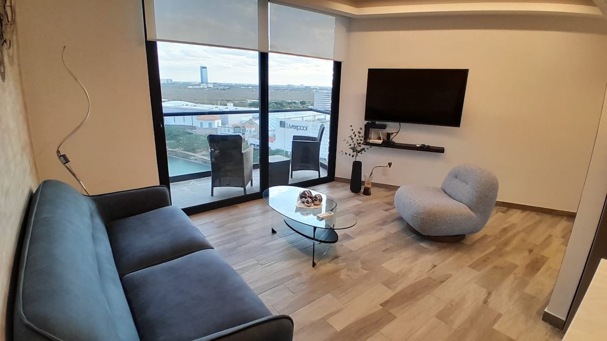 Hermoso departamento frente a Plaza la Isla, con una encantadora terraza con vista al Lago interior del exclusivo complejo Complejo Cabo Norte. Cuenta con una recamara con cama Quenn y un estudio con sofá cama. El WIFI es de 300MB, contarás múltiples amenidades de lujo como Alberca, Gimnasio, Game Room, Bicicletas, Area Barbecue, Sky Terraza en piso 19. Además justo frente a plaza La Isla. Un departamento verdaderamente acogedor, la pasaras muy agusto.