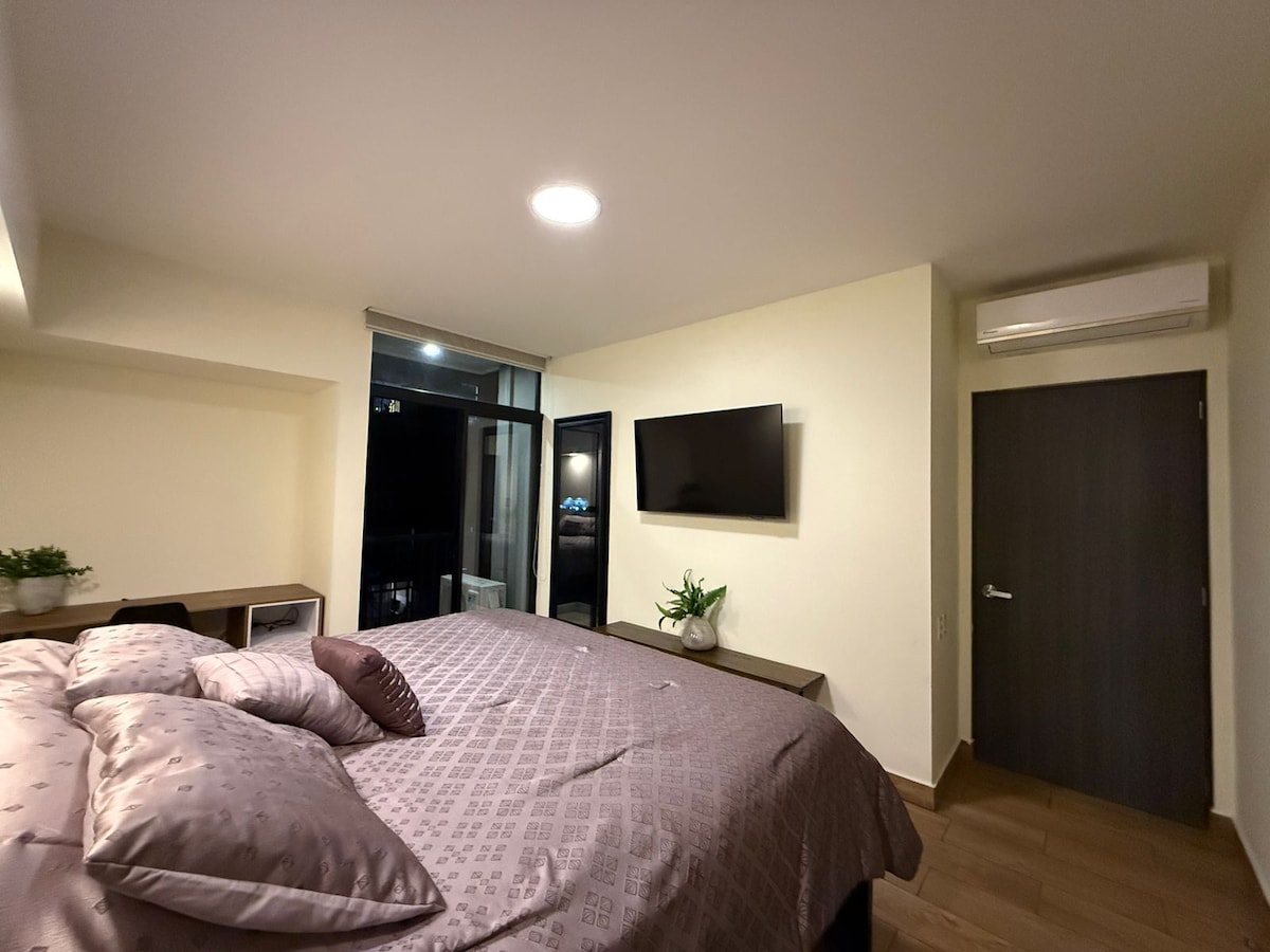 En este apartamento moderno y elegante en el cual disfrutaras de los espacios cómodos, con accesorios exclusivos que definen un nuevo estándar de servicio de primera calidad. Nuestra promesa a los huéspedes es ofrecerles una experiencia única y de mucha exclusividad durante todo el tiempo de tu estadía. Si tu estadía es por placer o negocios, este es un lugar especial para ti. !Bienvenido! es tiempo que disfrutes de este espacio tan tranquilo y elegante.