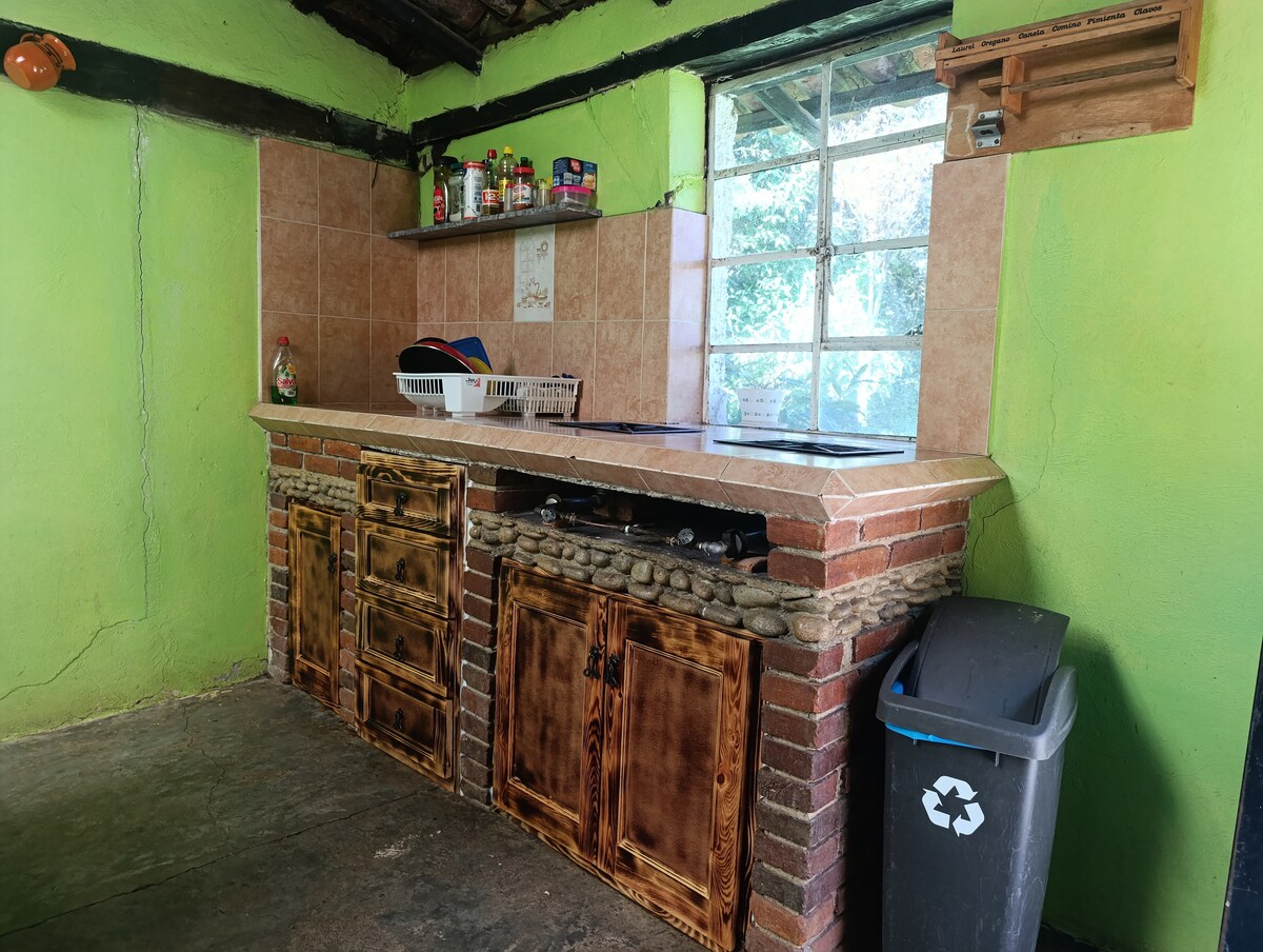 Casa de campo, rodeada de bosque y áreas verdes, con todos los servicios. Capacidad para 6 personas. El precio por noche es para dos personas; huéspedes adicionales (de 3 a 6 ), tienen un cargo adicional de $480 /persona / noche. Jue y vie santo, 24, 25 y 31 de dic y 1 de enero se incrementa 30% ($585) Servicio de wifi con cargo adicional * Ver detalles en: Información de la propiedad / limitaciones de servicios / Cosas que tus huéspedes deben saber Costo adicional: Internet y leña