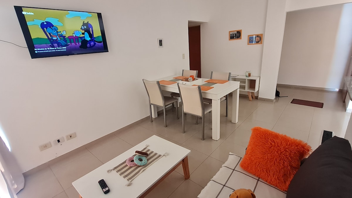 Departamento único de 2 ambientes, combina diseño moderno, comodidad y una ubicación privilegiada. Ideal para viajeros que buscan estilo y practicidad, el espacio está cuidadosamente decorado con detalles y equipado con todo lo necesario para una estadía completa. Edificio Los Jazmines, muy buena ubicación. A 200mts de la estación de tren y a 2 cuadras del centro.