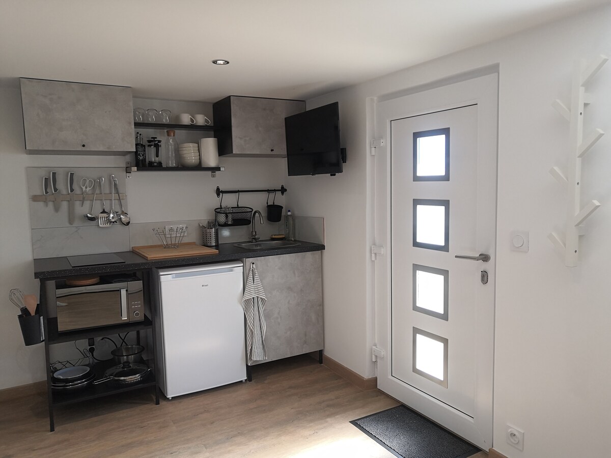 Le jardin est un studio de 20 m² De plain-pied, il dispose d’une entrée indépendante et d’une terrasse , idéale pour profiter d’un repas ou d’un moment de détente en extérieur. À l’intérieur, un espace de vie bien agencé comprend : • un lit double • une table • une kitchenette entièrement équipée (micro-ondes, mini-four, Senseo, bouilloire.. • une salle d’eau moderne avec douche (90×90), serviettes, savon et sèche-cheveux. Le studio est climatisé et dispose du Wi-Fi gratuit,