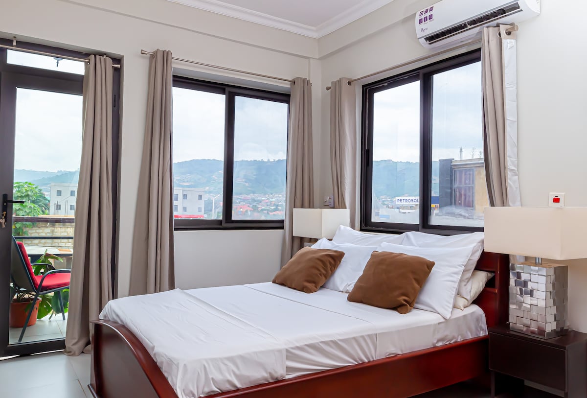 ¡Bienvenido a tu exclusiva escapada urbana en la ciudad de Acra! Con unas vistas impresionantes de las montañas Aburi, a solo unos minutos en coche o a 15 minutos a pie. A menos de 12 millas del aeropuerto, directamente por la M4 sin giros. Nuestro apartamento de dos dormitorios ofrece alegría y comodidad con seguridad las 24 horas, los 7 días de la semana, electricidad y agua las 24 horas, los 7 días de la semana, con servicios exclusivos, como piscina, terraza en la azotea, gimnasio moderno, cocina completa, wifi, barbacoa y mucho más que harán que tu estancia sea verdaderamente inolvidable.