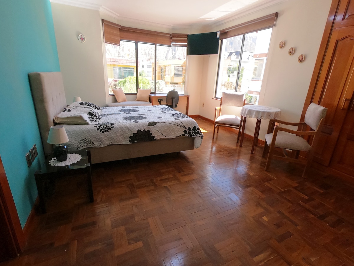Disfruta de la calidez de este departamento céntrico y acogedor en Sopocachi, zona muy segura y bohemia en una de las catalogadas ciudades maravilla, cerca de transporte público, a pasos del teleférico amarillo, uno de los atractivos turísticos, para viajeros de toda edad. Ubicada en un 1er piso, con ingreso independiente, consta de una confortable habitación con todo lo necesario para dos personas, Wi-fi, sala de estar con sofá muy cómodo, comedor, cocina, agua caliente y calefacción.