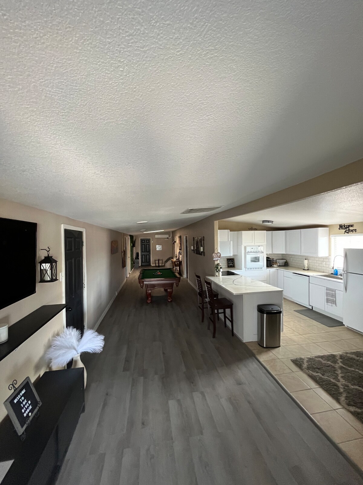 This bright, peaceful desert/river home was fully restored giving a modern vibe. 4 bedrooms, 2 bathrooms, including a master suite and lots of indoor/outdoor spaces to relax. Enjoy a fully stocked kitchen, new appliances, and central heat and air. Designed with tranquility in mind to make your stay feel like you are right at home. We’re a 1-minute drive to the river and community launching ramp. This River House is a place to enjoy the river, relax, and make memories!