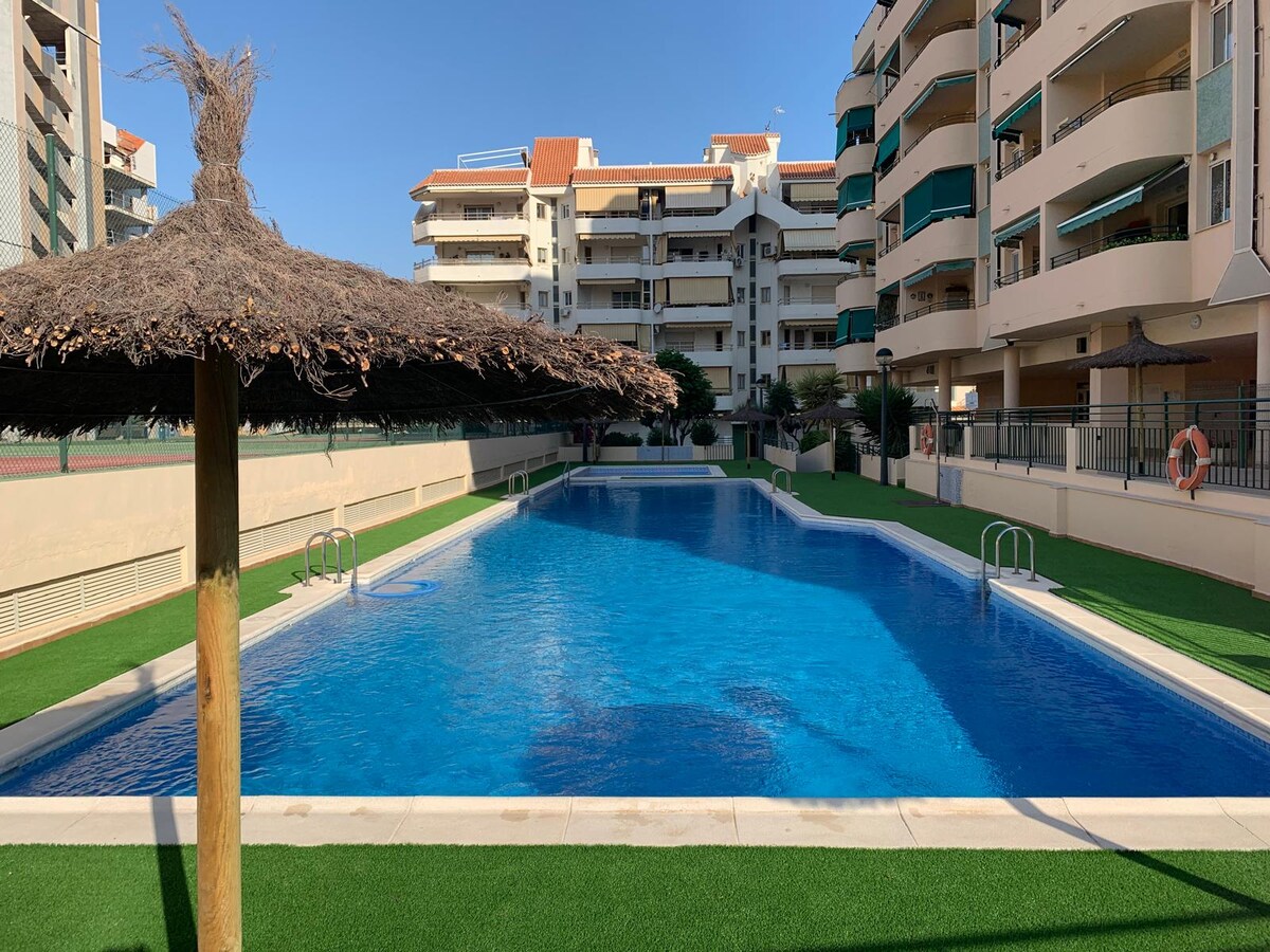 Acogedor apartamento en la playa con piscina.