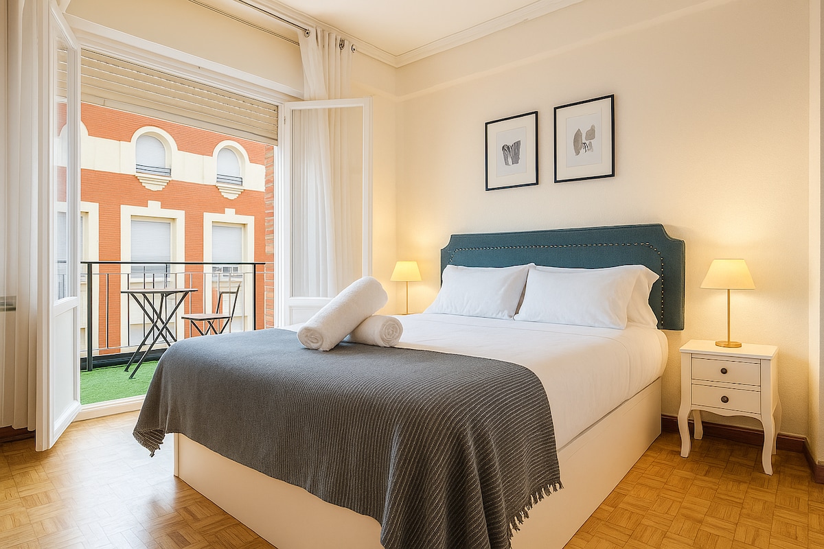 Piso recién reformado en El Centro de Logroño, con capacidad para 8 personas. El piso consta de un salón de 18m2, 4 dormitorios, dos baños, comedor y cocina independiente. La casa está amueblada con gusto y confortable para que los huéspedes disfruten de la casa como si estuviesen en la suya propia. El Barrio es El Centro de Logroño, a un minuto andando de la famosa calle Laurel y del Espolón y a dos minutos de la Catedral La Redonda.