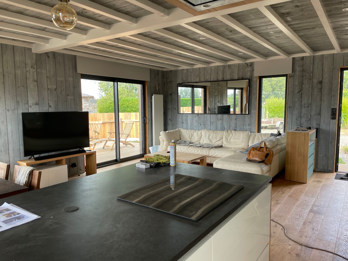 Casa reciente de 71 m2, luminosa, situada a medio camino entre el pueblo y la playa. La casa consta de una gran sala de estar (salón-sala de estar- cocina), un baño y 2 dormitorios (uno con altillo). Una gran terraza amueblada en los lados sur y oeste le permite disfrutar del sol. El entorno es muy tranquilo (camino rural), la casa está alejada de la carretera y sin vecinos. Se puede disfrutar de las vistas a los cultivos de los alrededores y de una pequeña vista al mar.