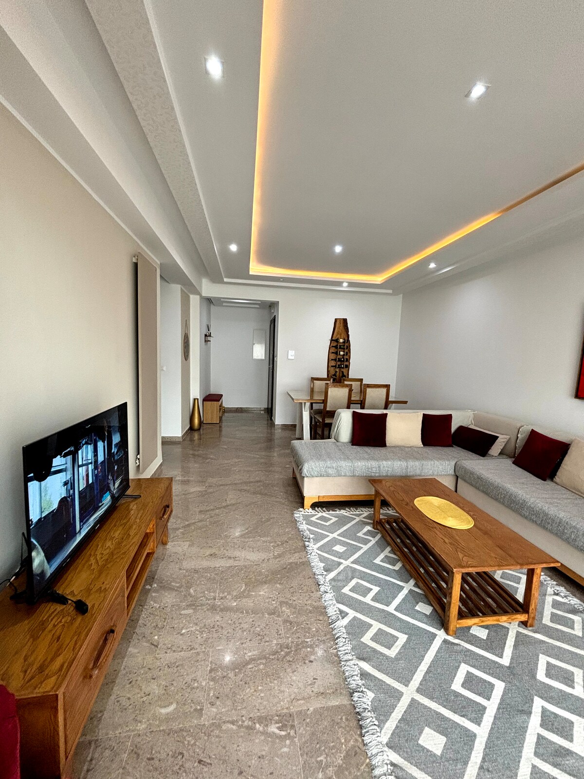 Disfrute de un alojamiento elegante y espacioso situado en Aouina, un barrio práctico y tranquilo ideal para familias, parejas y profesionales. El apartamento es luminoso, bien organizado y totalmente equipado, consta de un dormitorio cómodo con ropa de cama de calidad, una acogedora sala de estar con decoración cuidada, cocina amplia y separada totalmente equipada y un baño con bañera. Hay un lugar de estacionamiento privado disponible en el sótano. La residencia está vigilada con cámaras y cuenta con dos ascensores.