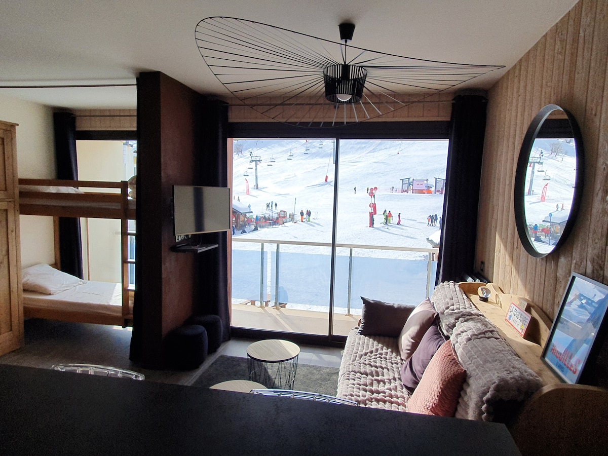 ***La Toussuire estudio con todas las comodidades y vistas a la montaña