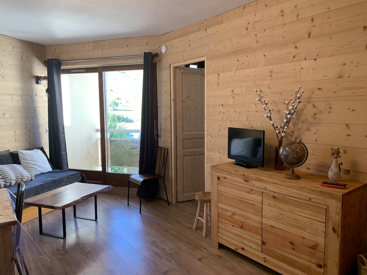 Apartamento completamente renovado en verano de 2021. El apartamento está al pie de las pistas. Tendrá acceso al estacionamiento gratuito frente al alojamiento y al armario de esquí. El apartamento incluye: - una gran sala de estar con cocina abierta totalmente equipada - una habitación cerrada - Un baño con ducha La estación La Toussuire es parte del Domaine des Sybelles, el cuarto dominio esquiable más grande de Francia.