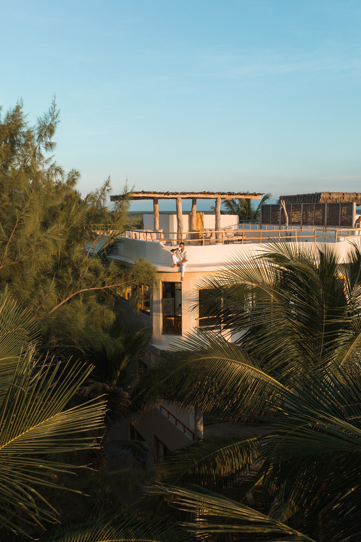 LOCATION LOCATION LOCATION! VIEWS VIEWS VIEWS! Tulum Beach’s closest sexy studio apartment, in Tulum's most unique building, steps from the beach!! This LUXURY studio sits in a new building that towers over trees, faces the ocean, & is walking distance to the beach. Our balcony gets a relaxing sea breeze. Nearby overpriced beach hotels are all on ground level, our building towers over them, w the same beach views, sea breeze & no mosquitos! Check out our rooftop pools connected by bridge!