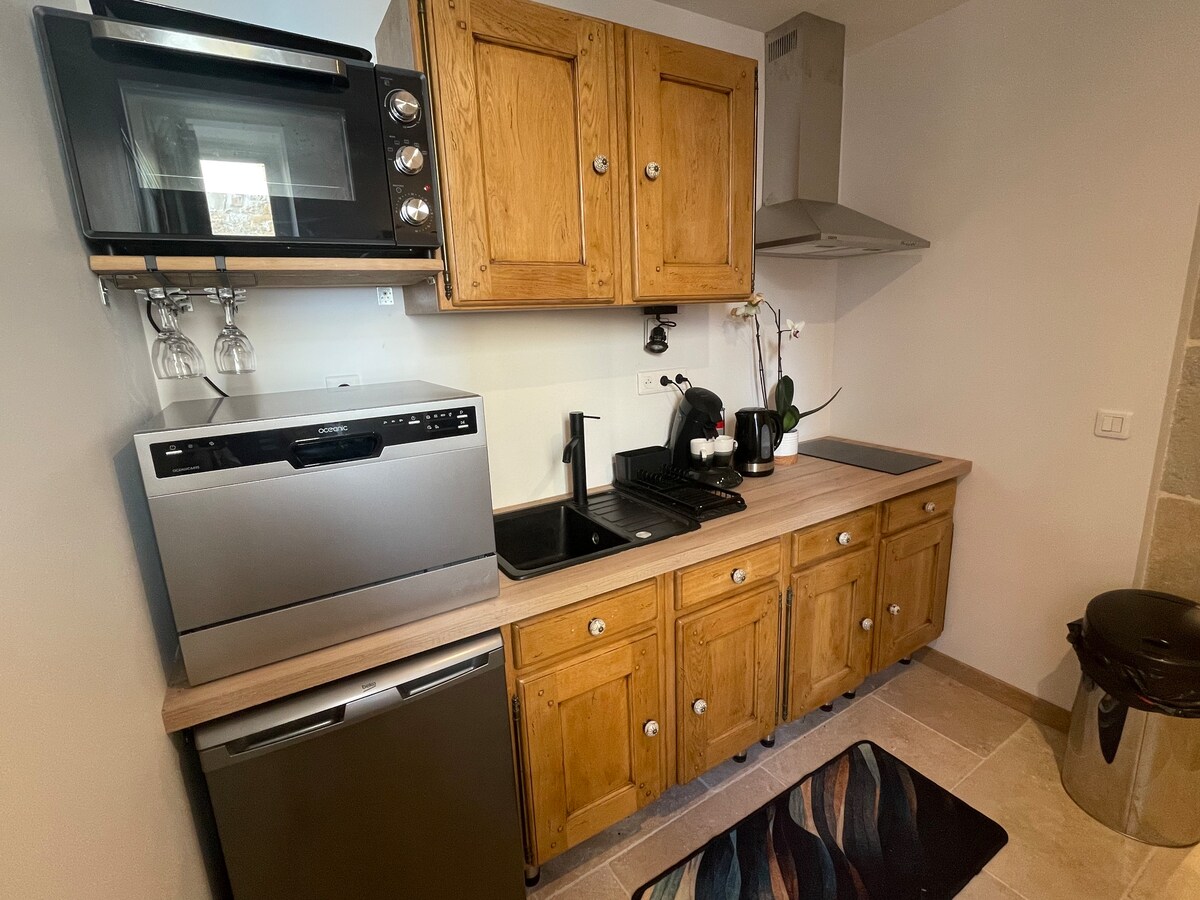Vive la experiencia de una gariotte totalmente renovada, en el corazón de la naturaleza, en un ambiente cálido y acogedor. Ideal para dos amantes, esta casa seduce por su autenticidad, su comodidad y su entorno bucólico. Disfrute de un espacio privado, arbolado, perfecto para relajarse, relajarse a la sombra. Déjese mecer por la tranquilidad del lugar. Un altillo combina el encanto de las piedras a la vista con el bosque natural. Una cocina moderna. Relajación en el jacuzzi privado.