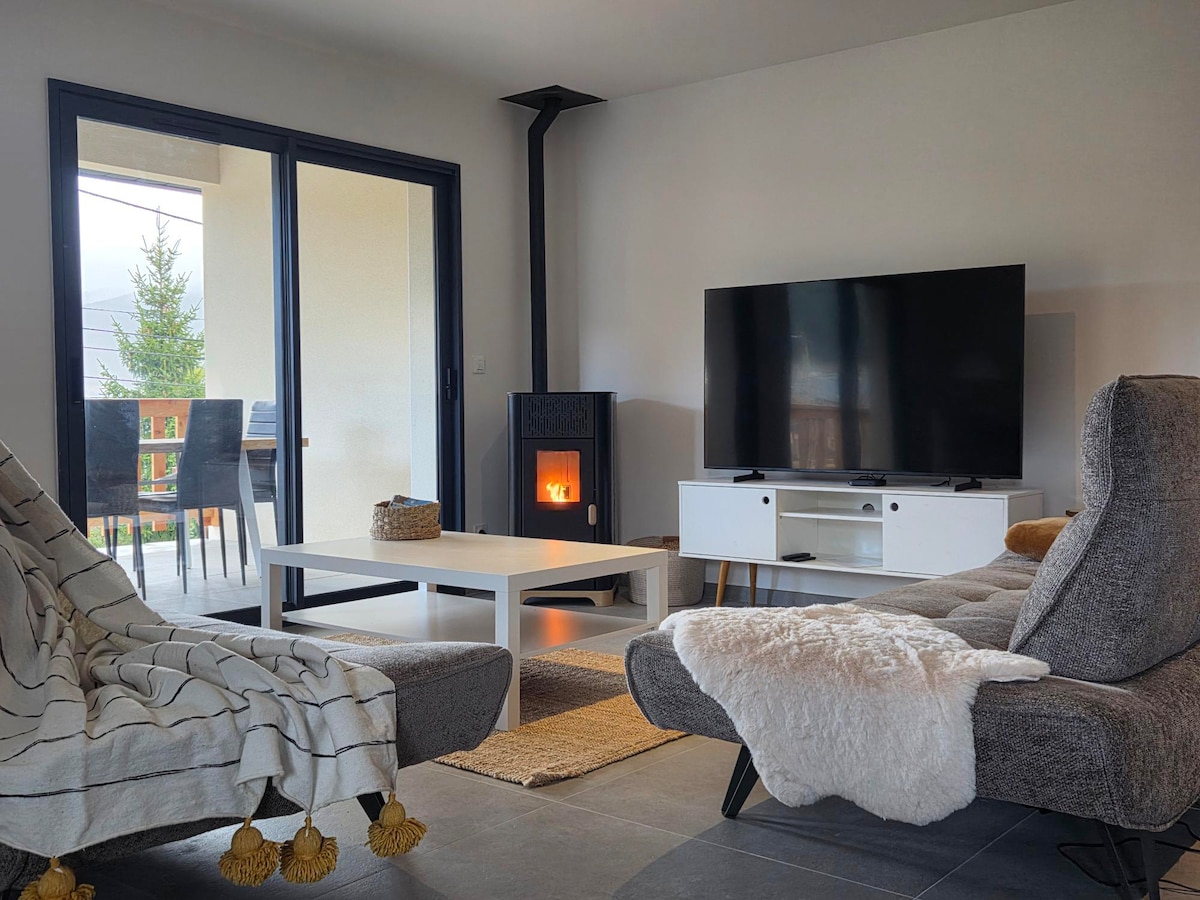 Bel appartement de 40 m2 lumineux dans une petite résidence, à deux pas du Village et de tous commerces. A proximité de nombreux chemins de randonnées, de navettes gratuites vers la station de ski, parc de jeux pour enfants... L'appartement est composé d'une grande pièce à vivre , d'une chambre avec lits superposés et un lit double, une salle de douche avec toilettes, un jardinet avec table de jardin, et parking. Vous disposez également d'un casier à ski.