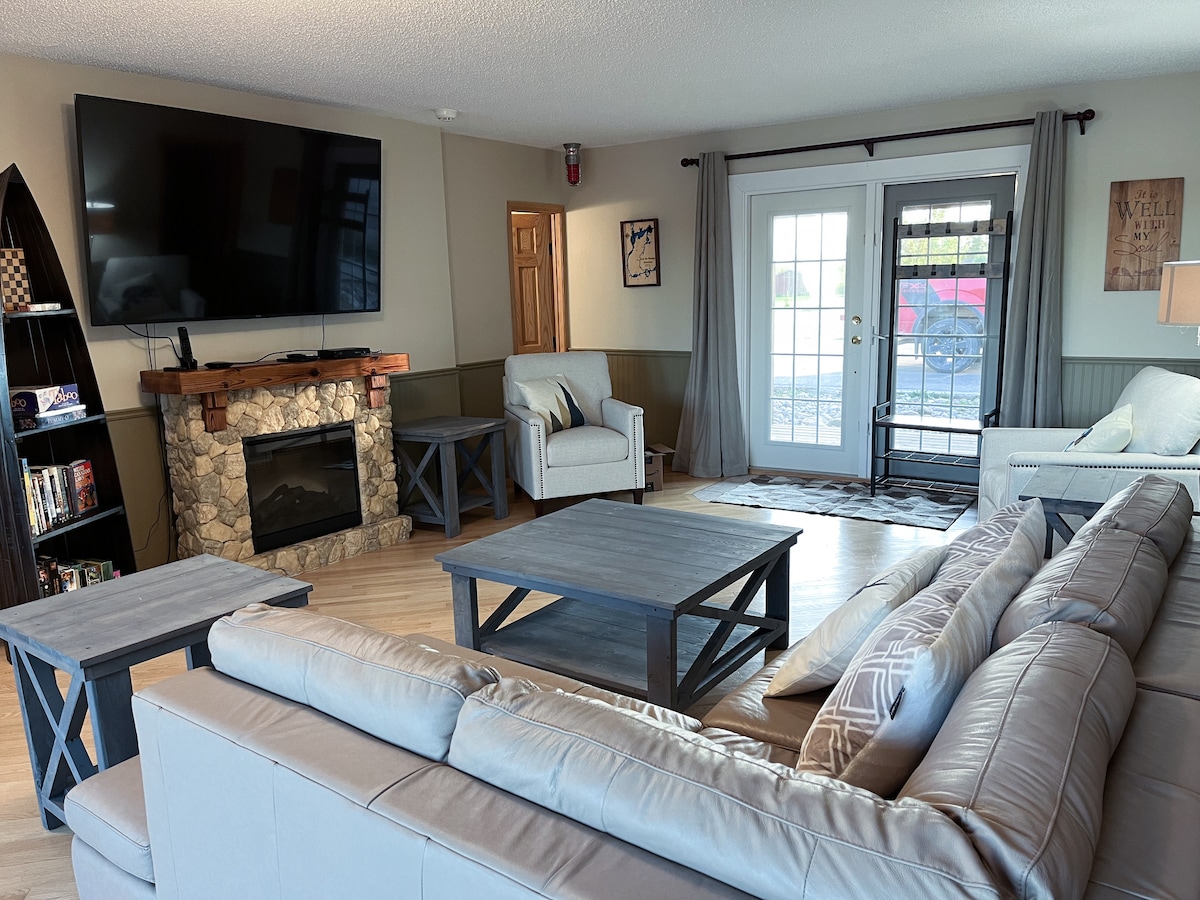 WELCOME TO THE BEAR’S DEN! So much to offer.. Sleeps up to four adults, six total Pet-friendly Private yard Wrap around deck Adirondack chairs Firepit and chairs - firewood included Hot tub - towels and deck shoes included Woodstove 5 minute walk to beach and boat launch Parking for vehicle and boat/quad trailer WIFI/65" TV Board games for all ages Unique decor by local artisans Hiking trails Quad/Snowmobile Trails 10 min to Grand Beach Fishing year round The perfect place to play & relax!