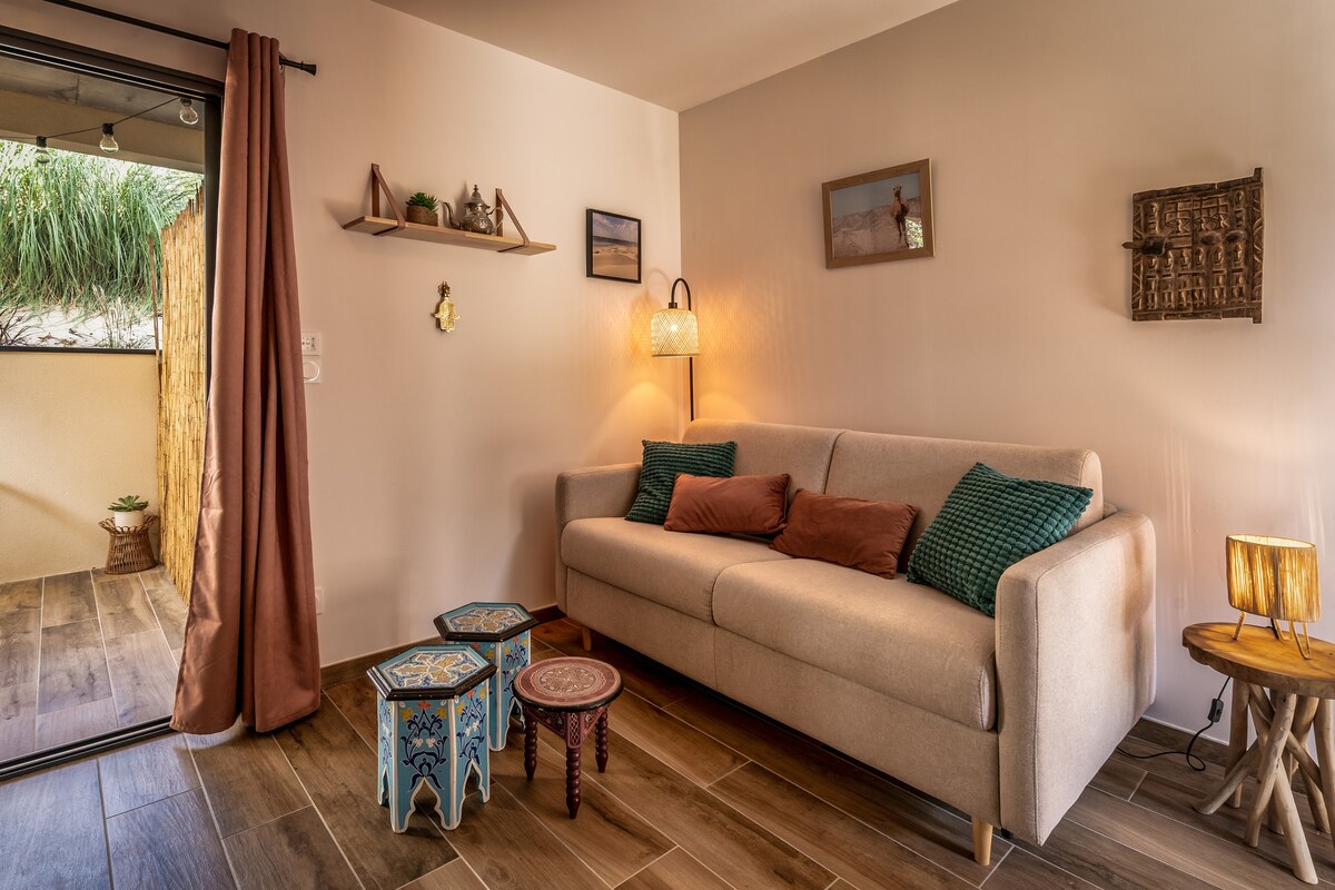 Tafadna est un appartement chaleureux et accueillant, inspiré par l’esprit du Maroc et la douceur de vivre de l’océan. Son ambiance conviviale et apaisante en fait un lieu idéal pour se retrouver, se reposer et profiter pleinement des vacances. Situé au sein de la Magic Surf House, dans un quartier calme, l’appartement se trouve à proximité de la plage et des commerces, accessibles à pied.