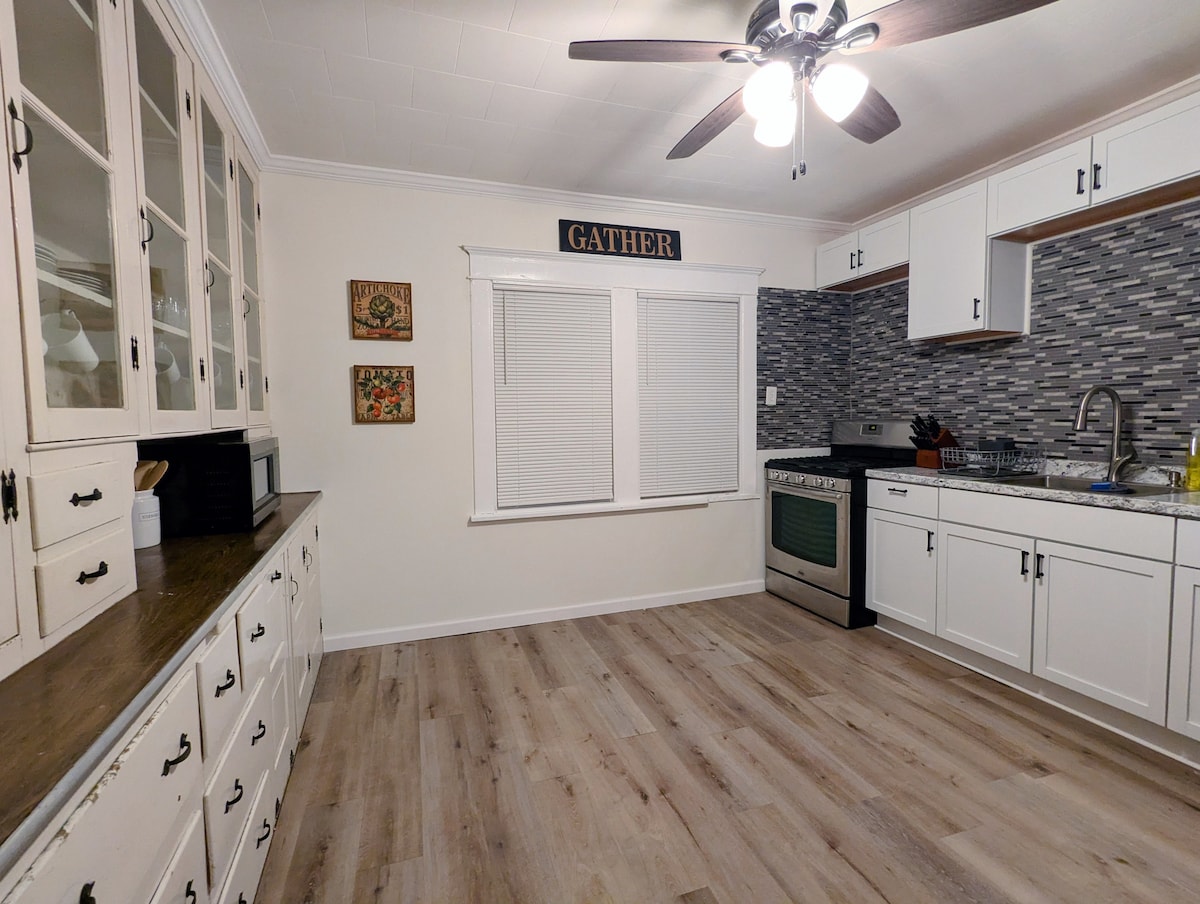 Welcome to our charming, old (but newly renovated!) Orchard Park Village Farmhouse! Large, but cozy, living and dining spaces and a huge kitchen with all the amenities. We have 2 large bedrooms, each is a "master suite" with bathroom and walk-in closets. In one bedroom, the king bed can be converted to 2 twins, if required. Queen sleeper sofa in living room. We're a short 1/4 mile walk to all the village shops, restaurants and coffee shops. 2 off-street parking spaces, wifi, AC, and laundry.