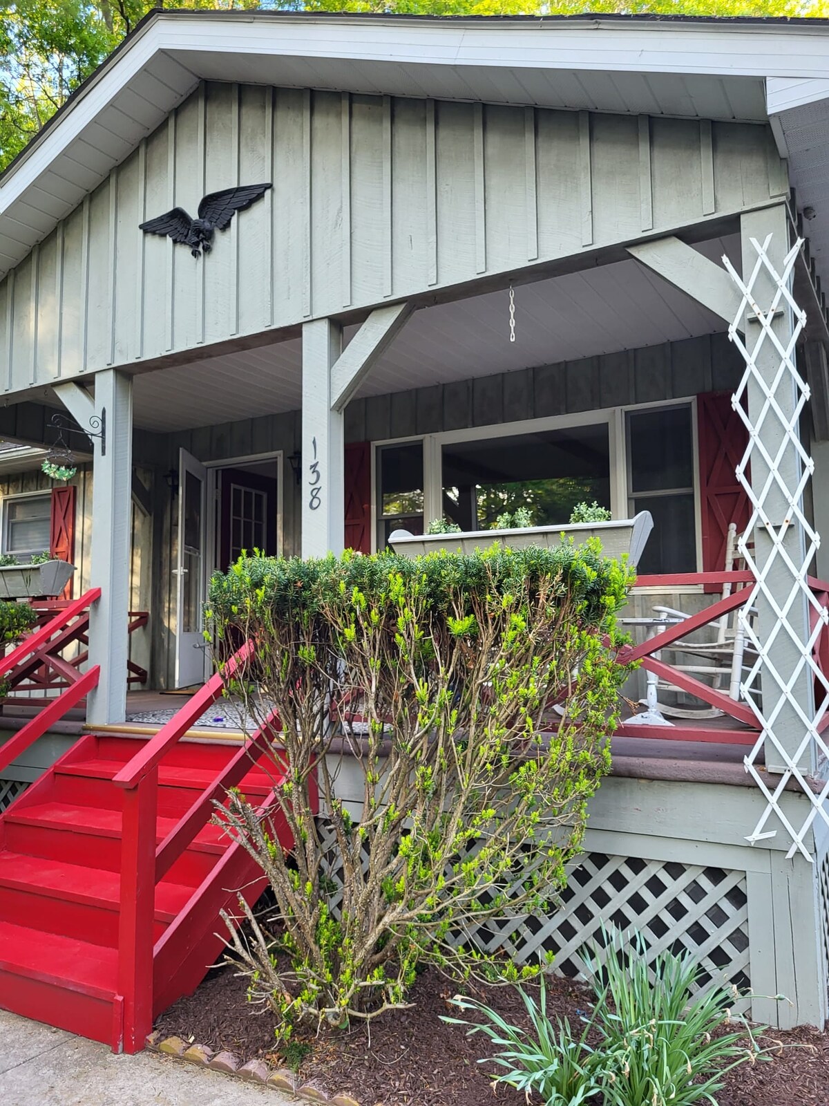 Descubre un paraíso aislado en más de 11 acres con un arroyo, un estanque y bosques. Este Airbnb privado cuenta con una habitación con cama tamaño king, un baño grande, una sala de estar de planta abierta y una terraza con impresionantes vistas. La propiedad incluye una sala de juegos/estudio con suelo radiante para yoga o fitness, además de 1/2 baño. Perfecto para los amantes de la naturaleza que buscan tranquilidad y comodidad. IMPT: No cobramos una tarifa de limpieza. A cambio, te pedimos que dejes todo limpio y ordenado al momento de la salida.