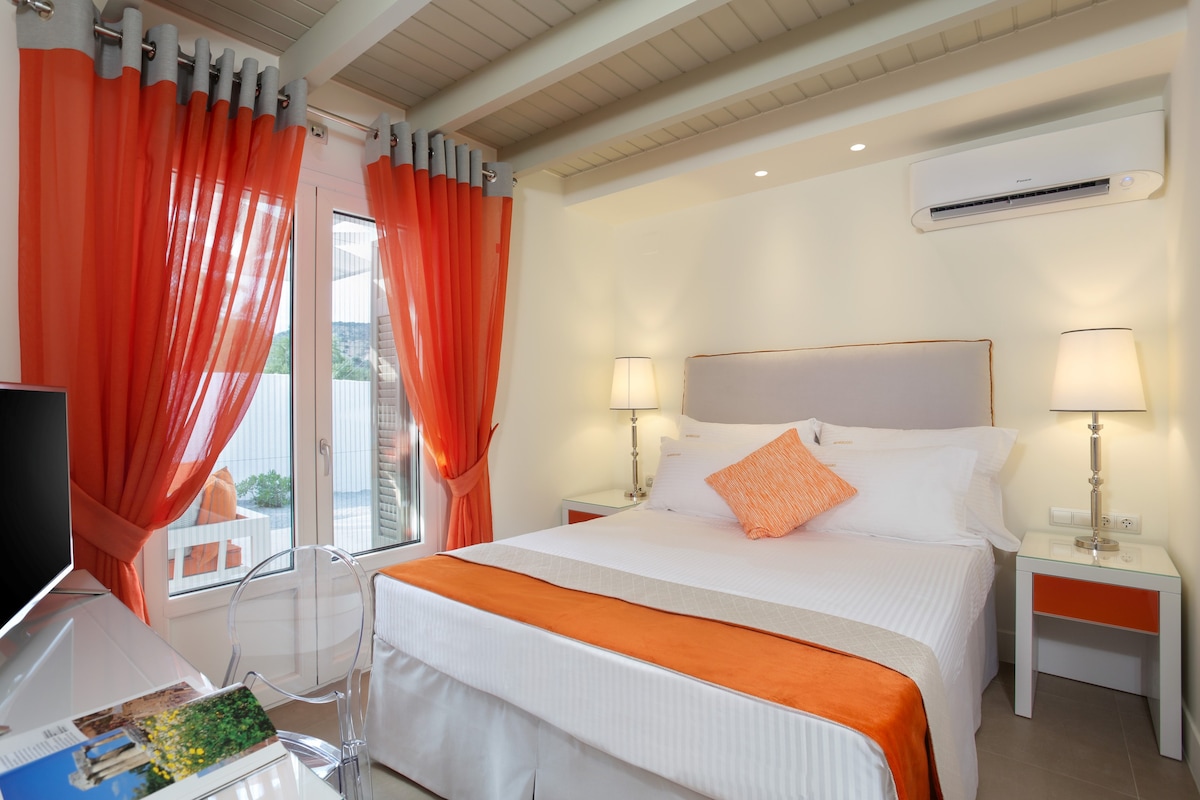 BOHO SUITE es una SUITE SUPERIOR con una increíble decoración bohemia. Es una suite de dos dormitorios. Cuenta con terraza propia con majestuosas vistas al mar. Esta suite tiene una cama americana Super king con ropa de cama fina y edredón de seda de verano inglés. También hay un columpio en el área principal. También hay 2 camas individuales en el segundo dormitorio. Las comodidades de Molton Brown completan el entorno ultra lujoso que definirá tu estancia en este lujoso hotel en Grecia.