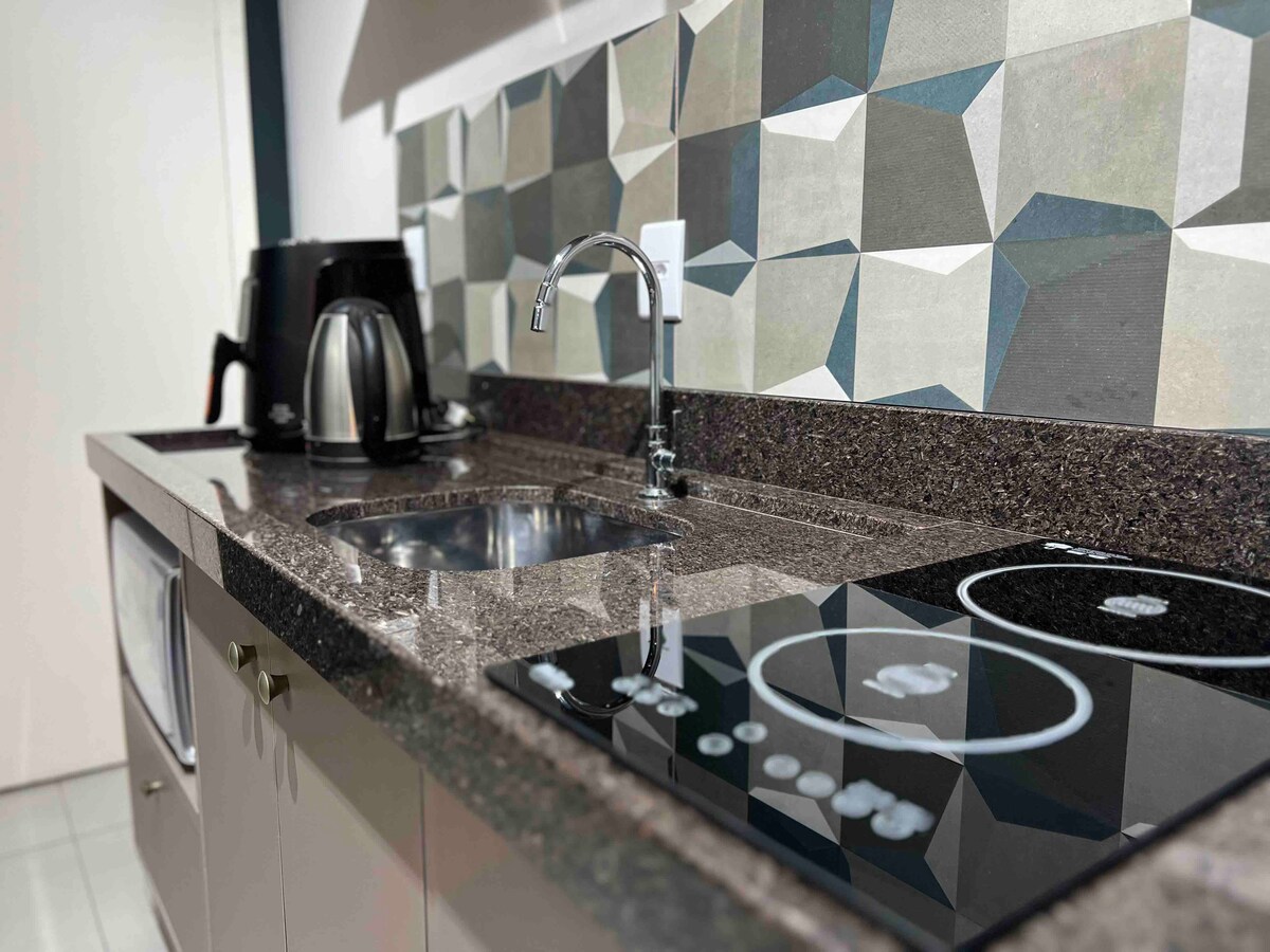 Studio com Garagem 1 cama Ar condicionado TV Chuveiro com aquecimento solar Cozinha compacta Os nossos studios estão no segundo andar check-in até as 18h Apos tem que combinar disponibilidade depois das 23 h não rec São 8 studios com cozinha completa e banheiro privativo 🚫 Proibido receber visitas 🚫 Proibido fumar nas dependências 🚫 Não é permitido pet Ótimo custo benefício ❌ Proibido estocar mercadorias ou descarregar produtos nos studio corredores e garagem ou fazer de estoque
