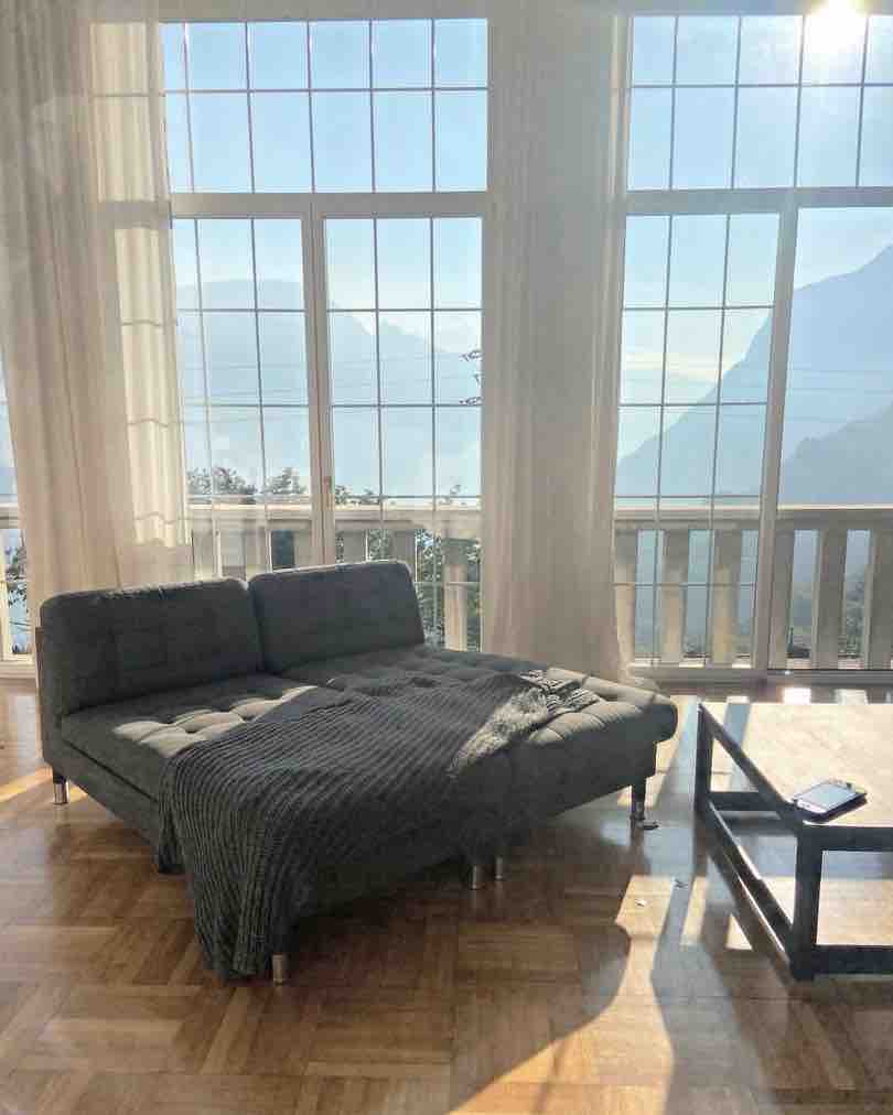 Private suite on the top floor of the owner-occupied Villa Wilen, directly on Lake Sarnen, unique alpine views, sunrises Spacious bedroom with home cinema, the panoramic lounge, large kitchen and bathroom (all privat area). For 3–5 guests, an additional private bedroom with bathroom is provided one floor below (lift access - shared area). Lake and garden access, SUPs, free parking & WiFi. Children welcome, small dogs only. Most popular Swiss Airbnb. Most highlights are reached within 1 hour.