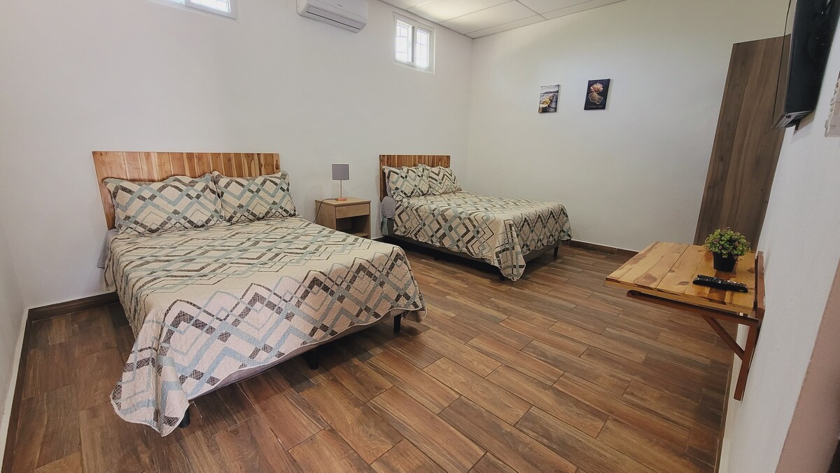 Disfruta del fácil acceso al Aeropuerto Internacional Mundo Maya, Centro Comercial Metroplaza Mundo Maya, restaurantes populares, mercado, Isla de Flores y otras atracciones turísticas; desde este encantador lugar para hospedarte. Este apartamento está en primer nivel, fácil acceso, 2 aires acondicionados, cómodo, con cocina-sala-comedor equipada para 4 personas, 1 dormitorio con 2 camas matrimoniales, baño completo privado, parqueo dentro de las instalaciones, lavadora y secadora común.