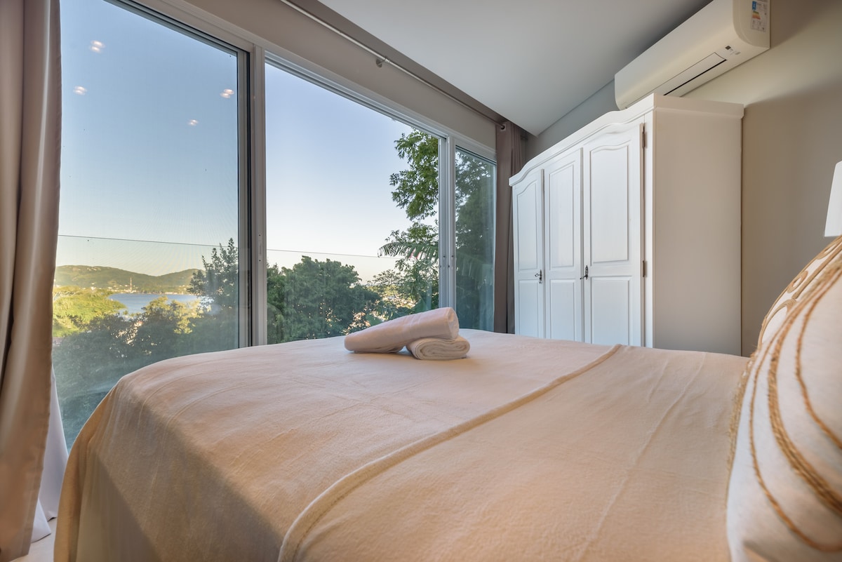 Un loft privado con una vista impresionante de la ¨Lagoa da Conceição¨ y el mar, ideal para parejas, ubicado en el barrio ¨Canto dos Araças¨, en medio del bosque atlántico. Una ubicación acogedora, silenciosa y privada, a solo 2,5 kilómetros del centro del barrio de Lagoa, a 300 metros de Lagoa da Conceição, al comienzo del sendero a Costa da Lagoa. Una casa romántica panorámica ideal para parejas. A 5 minutos en auto del centro de la laguna. A 15/20 minutos en auto de la playa Mole/Joaquina/Galheta/Barra.