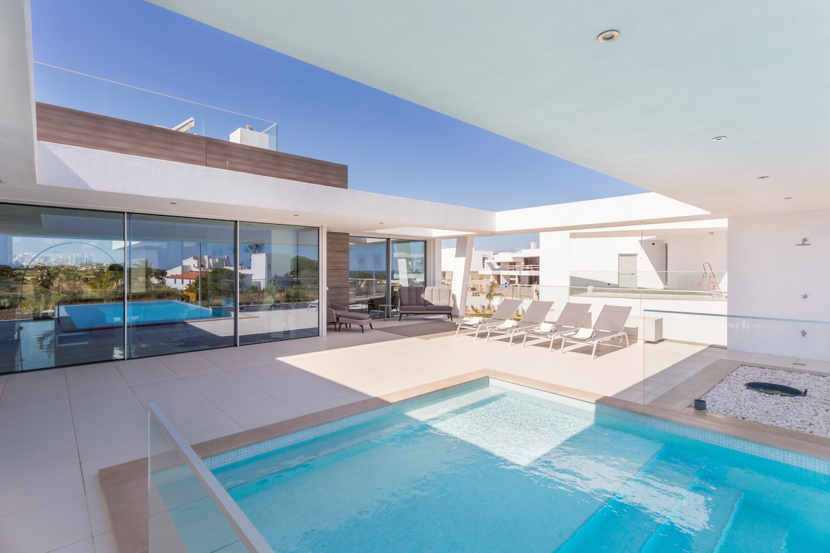 Super precio para el invierno (noviembre-marzo): 1500 € por mes todo incluido (el período mínimo de alquiler es de 3 meses). El nuevo apartamento de lujo de 2 dormitorios está ubicado en el distrito de élite de Lagos en un condominio cerrado con piscina y jacuzzi al aire libre. La playa más cercana es Porto de Mos en 10 minutos a pie, cerca de tiendas y restaurantes. ¡Ideal para una relajación cómoda!