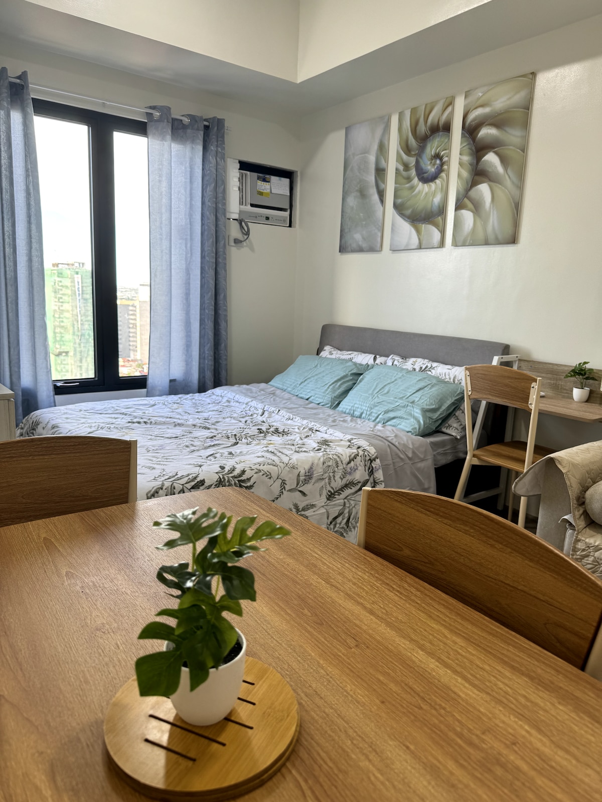 Acurrúcate en este tranquilo y elegante estudio de 27 metros cuadrados en el piso 16, que se encuentra en una zona discreta de la ciudad de Lapu-Lapu, a la que se puede acceder fácilmente desde el aeropuerto internacional de Mactan Cebú (a 13 minutos en coche), mercados públicos, iglesias y 7/11 en el lugar.   Es una opción ideal para los viajeros que buscan un alojamiento a un precio razonable para visitar Cebú. Nota: El huésped que supere los 3 años utilizará el colchón de suelo proporcionado. Ubicación: Condominio Saekyung 956, Looc, Lapu-Lapu City.
