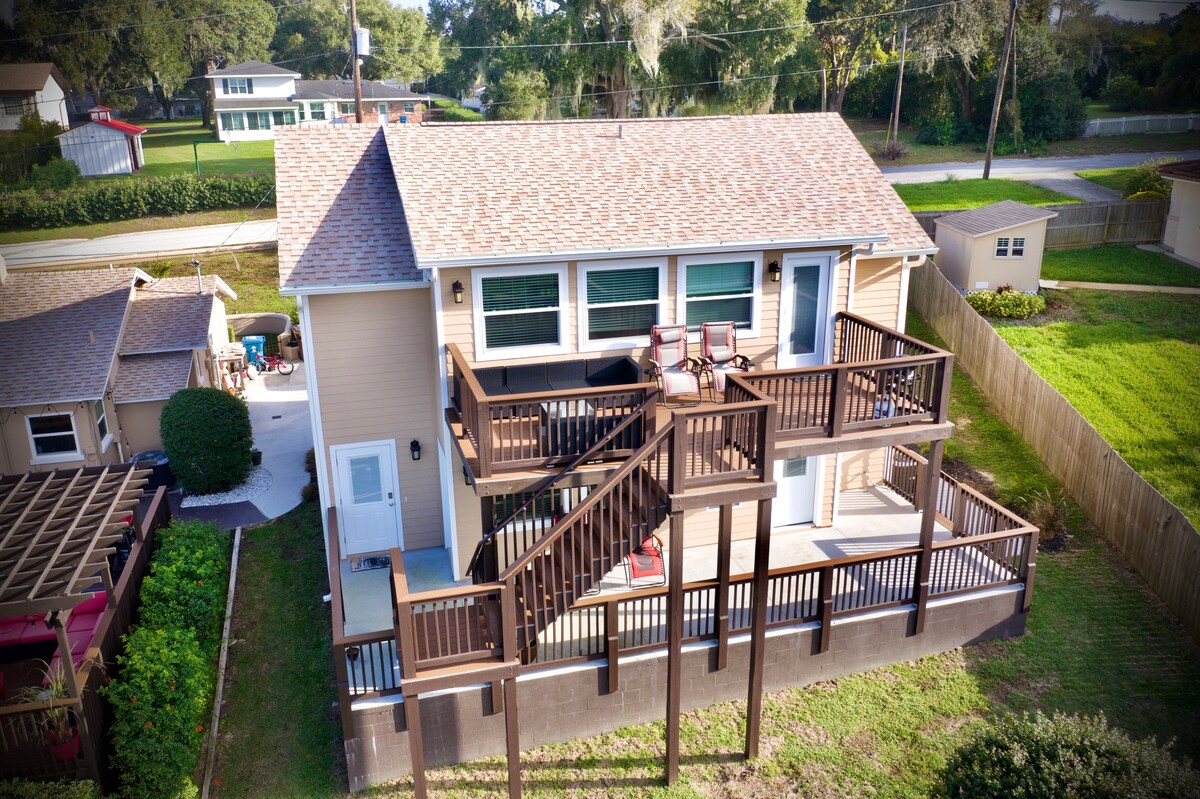 ** New Construction ** Breathtaking view of lake, private dock (2 kayaks for guests included), beach/swim area, outdoor shower, large private balcony w/gas grill and gorgeous sunsets! 2 Bedrooms each w/walk in closet, two full baths, full kitchen w/all amenities. All new furnishings, (3) 4K Smart TV's, FAST free wifi. Gorgeous location, quiet street, private free parking, 2 private entrances. Villa is detached from main house. Near Disney, LegoLand, Bok Tower. WEEKLY & MONTLY DISCOUNTS