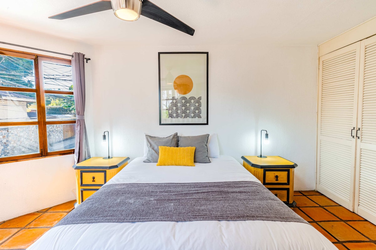 Designer Mexican villa offers a private solar-heated pool, lush garden, AC throughout, and a blend of traditional charm and modern comforts. Just blocks from Lake Chapala, the Malecón, the Plaza and steps from a nearby bar, shops, restaurants, and galleries. Relax in the pool, enjoy horses passing by, or festive parades. A peaceful retreat after exploring Ajijic and Lake Chapala. ☞ Private Pool | Garden | Patio ☞ Lake Access (5 min) | Concierge* ☞ 1 Bedroom w/ Ensuite | Fast WiFi 214 Mbps