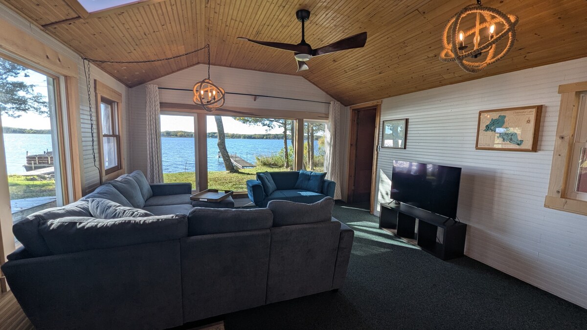 ¡Relájate y deja que la vida se reduzca un poco en la cabaña artesanal con una NUEVA bañera de HIDROMASAJE con vistas al lago! Casa renovada en el tranquilo lago Maple de 777 acres. Disfruta de las vistas al agua desde la habitación familiar a través de las ventanas del piso al techo. Jugá, cociná tus comidas favoritas en la cocina completa o disfrutá de una película en el televisor inteligente. ¡Gran sala de estar para pasar el rato! Diversión todo el año en esta acogedora cabaña. ¡Visita la cervecería local o el bar de vinos y el mejor café de la ciudad está justo al final de la calle!