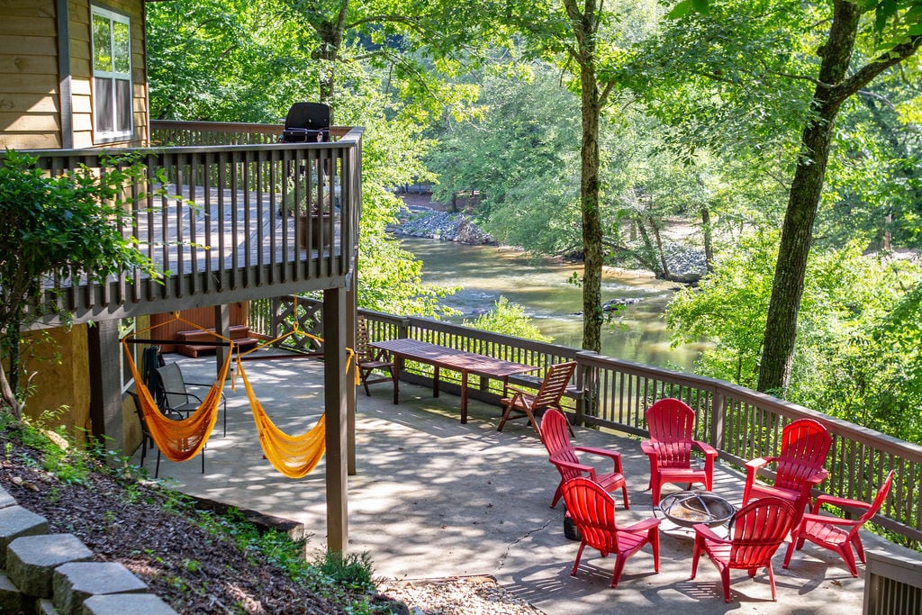 ¿Buscas un “alojamiento único”? Esa es nuestra mermelada. Goose Rock Cabin es una cabaña frente al río en Ellijay, en el norte de Georgia, con jacuzzi. Este loft, que perteneció a un maestro artesano, es un estudio de arte hecho a mano. Las garzas pescan en nuestras aguas, y vos también podés hacerlo. Los pájaros pasan para recordarte que hay más en la vida que la rutina. Olvidate de la app, abrí las ventanas y dormí como un bebé con los sonidos del río que corren las 24 horas, los 7 días de la semana. ¡Vení! Hay un pedazo de tarta de manzana en el freezer para vos. Perfecto para familias, parejas y escapadas rápidas a Atlanta. ¡Se admiten perros!
