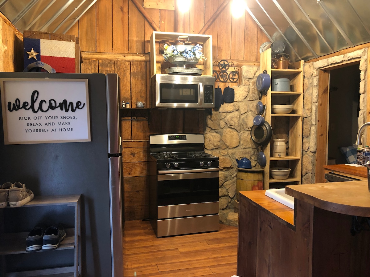 Mucho más que una estancia nocturna, es una experiencia. Ven al campo para escapar de todo. Disfruta de la naturaleza en esta pequeña y pintoresca cabaña que permite relajarse al aire libre bajo un porche totalmente cubierto. Pesca un pez, asa un s'more o acaricia una cabra. Carrito de golf disponible para recorrer los alrededores. Glamping en todo su esplendor. Finalmente tuve que ceder a la tecnología y añadir wifi para los huéspedes (gratis) y también añadí un amplificador de teléfono móvil para una mejor comunicación exterior cuando sea necesario. La piscina ya está disponible.