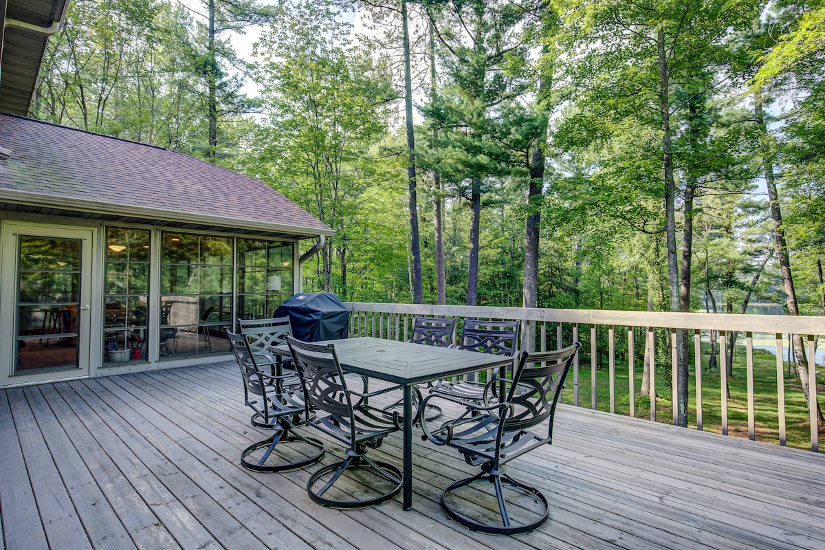 Esta es una casa de dos dormitorios y dos baños en un entorno sereno con acceso cercano a muchos servicios locales. Un dormitorio tiene una cama tamaño king, otro una cama tamaño queen y hay una cama tamaño queen y un sofá cama doble en la sala de estar. Cocina totalmente remodelada. Amplia terraza frente al bosque con parrilla y chimenea. ¡Ubicado en el sendero Bearskin para caminar, montar en bicicleta y en motos de nieve! Cerca de muchos lagos y atracciones. Fácil acceso desde la autopista, pero en una tranquila calle sin salida. Wifi gratuito/Smart TV. ¡Listo para crear recuerdos!