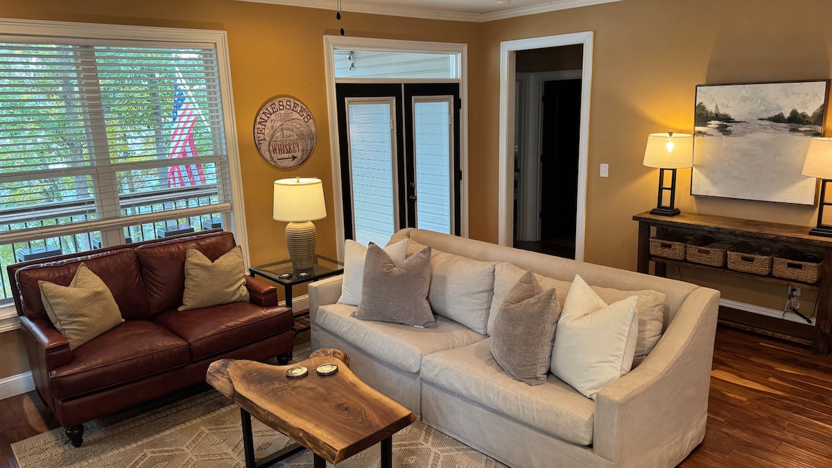 Disfrutá de vistas de 270° desde nuestra península privada en el lago Sinclair, donde el agua es clara y el fondo es de arena suave. Tres suites principales con baño privado más un cuarto dormitorio con baño. Plano abierto con vistas al atardecer a través de puertas dobles. Atracá tu barco, hacé una parrillada en el porche, relajate en el patio con mosquitero, hacé una fogata, hacé kayak, surf de remo o flotá. Cerca de 183 metros de costa privada. Capacidad para 12 personas (14 con cuna/colchón inflable).