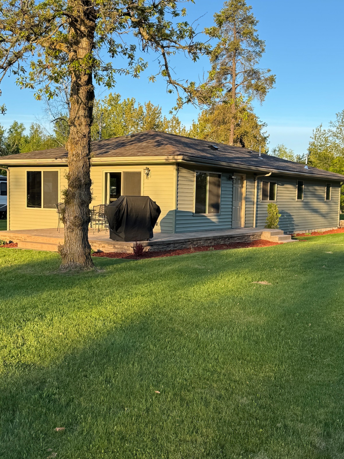 Ubicada en un terreno pintoresco privado a pocas cuadras del centro de la ciudad, esta propiedad está en el borde de mucho: el borde del río Warroad; el borde del lago del bosque; el borde del país, a solo 7 1/2 millas de la frontera canadiense; y el borde del majestuoso Bosque Estatal de la Isla Beltrami de 700,000 acres. Ya sea que estés en el área para pescar, asistir a una actuación en el Rivers Edge Performing Arts Center, un torneo de hockey, para jugar al golf o a un evento, te sentirás bienvenido aquí.