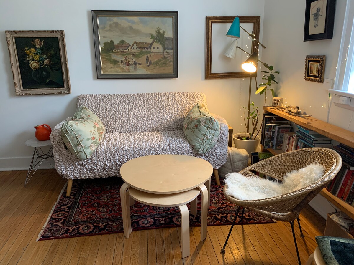 Una escapada única, esta pequeña y auténtica casa lejos de casa es realmente una playa original, con un arte genuino, libros y el agua a pocos pasos. No hay ambiente de 'hotel' aquí, este piso vintage es casa de un artista. Ya sea que te falten unos días para trabajar en paz o para ir a la playa, este pequeño oasis tiene lo que necesitas. Buen wifi y un espacio de trabajo con monitor adicional, excelentes cafeterías, la biblioteca, el paseo marítimo para correr, el cine Fox y el acceso al piso principal. Viejo, pero encantador :) y el calor del radiador es tranquilo .