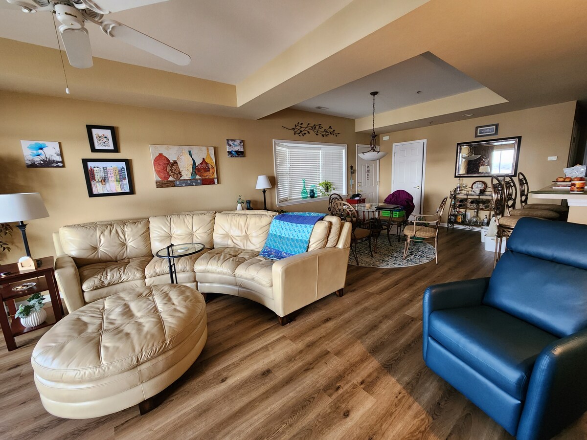 «¡Esto es todo!» Vista panorámica del canal principal de 3 millones de dólares, entrada a nivel, dos televisores Roku de 58 pulgadas, cama tamaño king, chimenea eléctrica, terraza cubierta, plancha eléctrica Blackstone, piscina de agua salada, muebles de terraza, tumbona Papasan, café Keurig, wifi de 400 Mbps... ¡y una hamaca! El refugio perfecto para parejas, pero lo suficientemente grande para una familia pequeña... ¡Nos encantaría hospedarte en Lakescape Romantic Retreat! Creemos que nuestro apartamento cumple con tantos requisitos que dirás, tal como lo hicimos nosotros: «¡Esto es todo!»