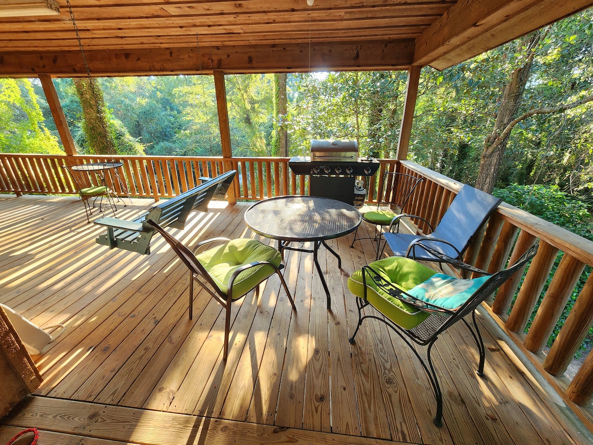 ¡Sal a la naturaleza y quédate con comodidad! Cabaña grande privada frente al agua, elevada en los árboles fuera de Carriere, MS, capacidad para 8 personas. Se admiten perros. Impresionantes vistas desde una terraza envolvente con vistas a un arroyo de arena blanca en un entorno forestal. Sendero a tu propia playa de arena PRIVADA. Parrilla, chimenea y fogón, juegos para la familia listos para usar. Escapada aislada y perfecta para recargar energías con los sonidos de la naturaleza. ¡A solo una hora de Nueva Orleans!