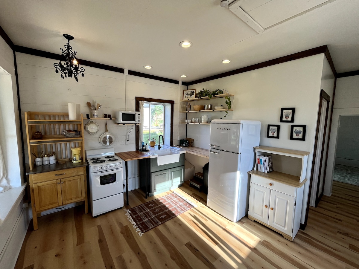 Recientemente remodelada y amueblada con buen gusto, esta relajante y acogedora casa de campo cuenta con un encanto único con su propio arroyo privado que recorre la propiedad. ¡El arroyo corre a lo largo del dormitorio trasero y continúa bajo el comedor de la casa actual! Construida en 1912, nuestra casa tiene todo el encanto de antaño con todas las comodidades que necesitas en esta década. Si buscas una escapada relajante a la montaña con fácil acceso a restaurantes y actividades al aire libre, este es el lugar ideal.