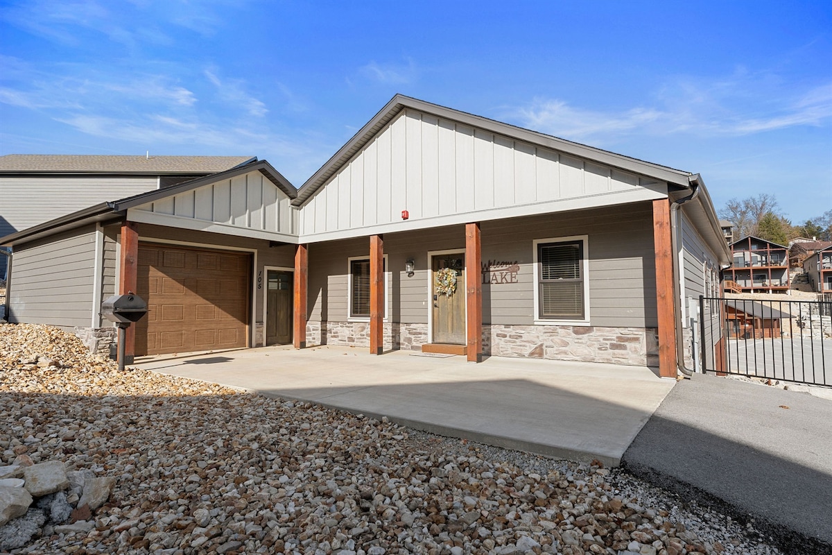 ¡Te damos la bienvenida a la Casa de las Mariposas! Alójate en nuestra acogedora casa llena de comodidad y calidez con una hermosa vista al lago. Encontrarás diseños de mariposas en toda la casa. Una cocina de concepto abierto y una sala de estar te recibirán, con luz que fluye desde techos altos y a través de grandes ventanales. Por la noche, disfruta de las luces que se reflejan en el agua desde los muelles al otro lado del lago. Disfruta de los divertidos servicios y de la proximidad a las atracciones de Branson.