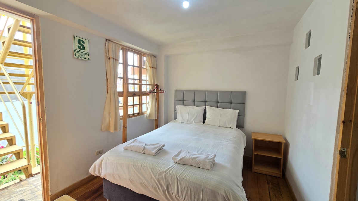 Nos ubicamos a cuatro cuadras del centro de la ciudad. Nuestras habitaciones son con baño privado, cogedoras y muy tranquilas. Te ofresco una estadía familiar. El desayuno está incluído, desde 6.30 AM hasta 9 AM, tiene vista hacia el jardin