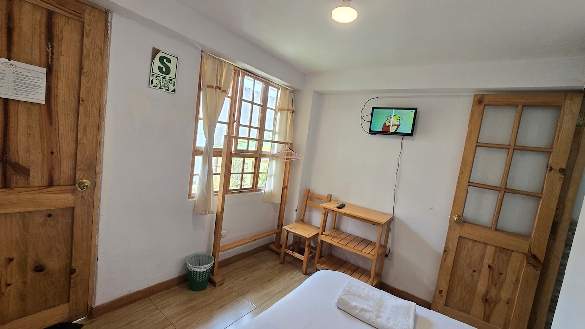 Hostal Santander is a colourful hostel in the heart of Sorata. The place is located next to the Mercado Municipal and close to the Main Plaza (Plaza Principal). We offer rooms for one to five persons. All rooms have good WiFi access and cable TV. There are shared bathrooms on each floor. Guests can use the well equipped community kitchen. There is a nice rooftop area where you can relax and enjoy the view on the mountains around Sorata. At our 24 h reception we offer food and beverages