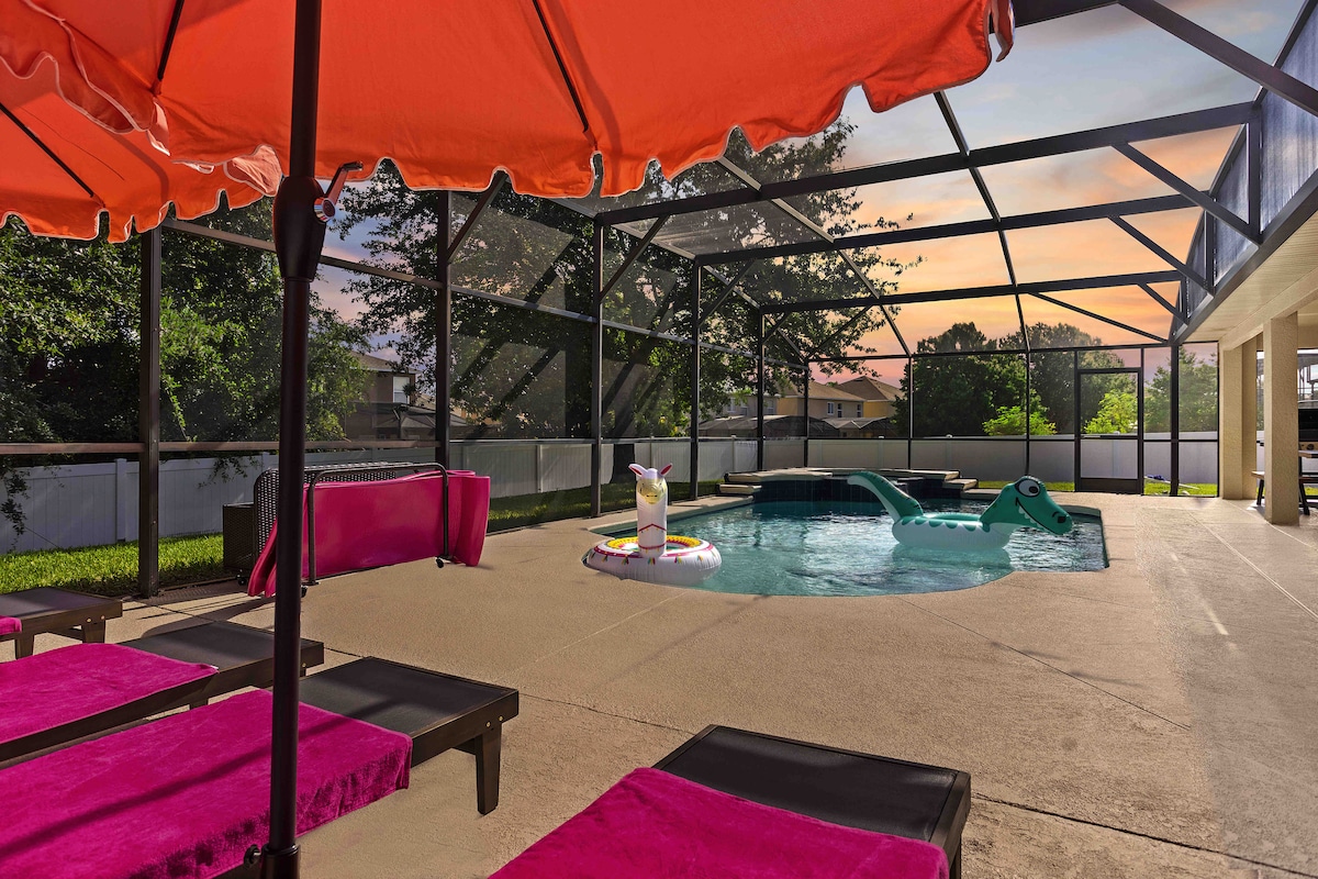 Welcome to Sprocket Palms, a stylish 3,000 sq. ft. retreat just 20 minutes from Disney. This recently renovated home offers a heated pool and spa, retro 90s arcade, plush designer bedrooms and an outdoor lounge with a TV. Thoughtfully designed for both comfort and fun, it’s the perfect escape for families, friends, and groups of all ages looking to relax, recharge and make unforgettable memories.