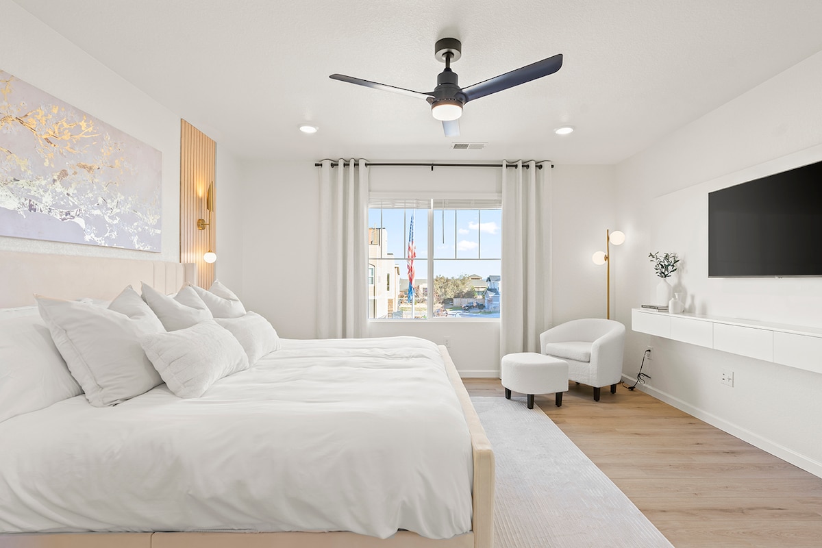 Escape to our Scandinavian-inspired retreat near Red Rocks Amphitheatre in Littleton, Colorado. Luxurious en-suite master with custom makeup room, multi-purpose loft, and gourmet kitchen await. Enjoy minimalist elegance, private garage, EV charging ($10/night), and fast Wi-Fi. Ideal for adventure seekers and concert-goers looking for a blend of modern comfort and convenience. Minutes from local cafes and trails, it’s the perfect base for your Colorado exploration. Unforgettable stays start here
